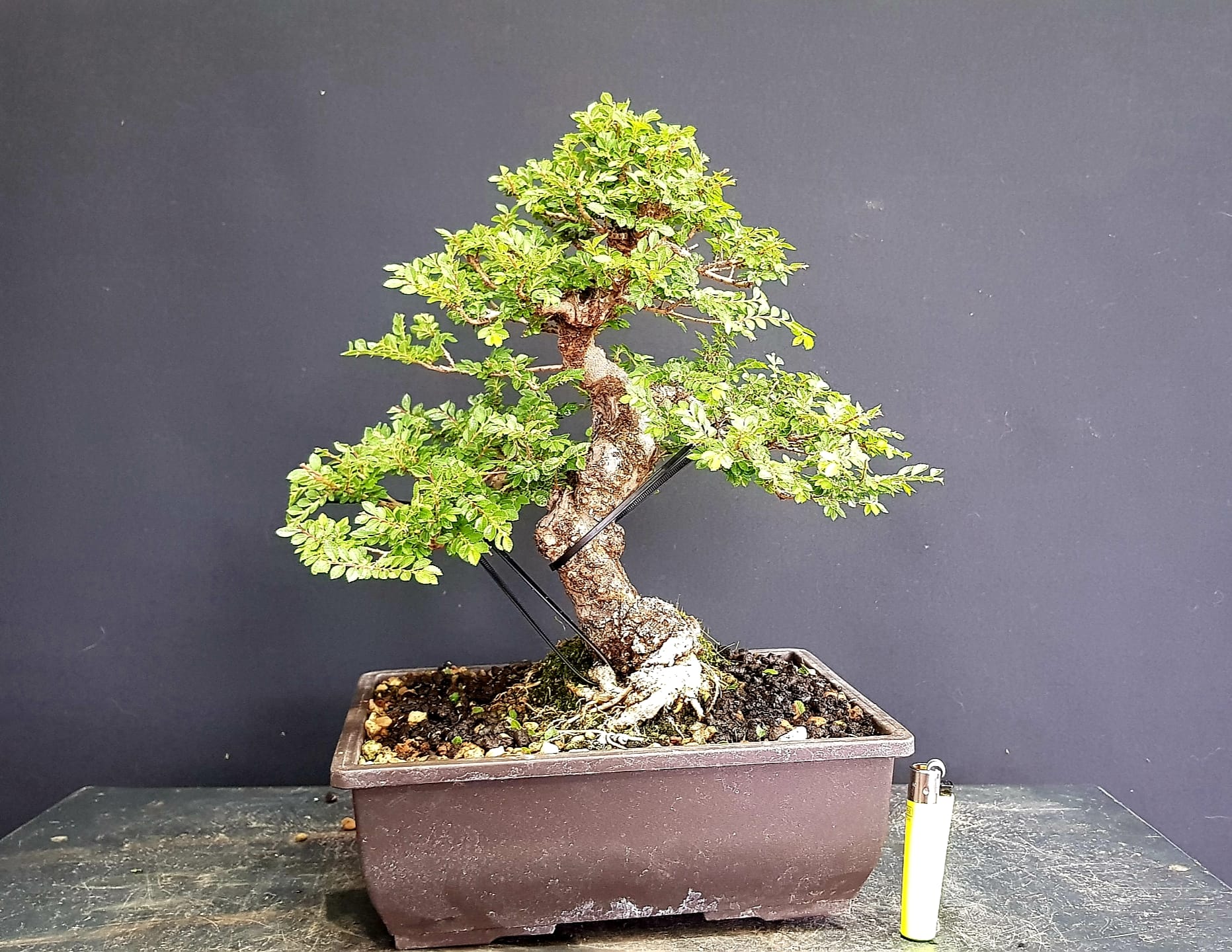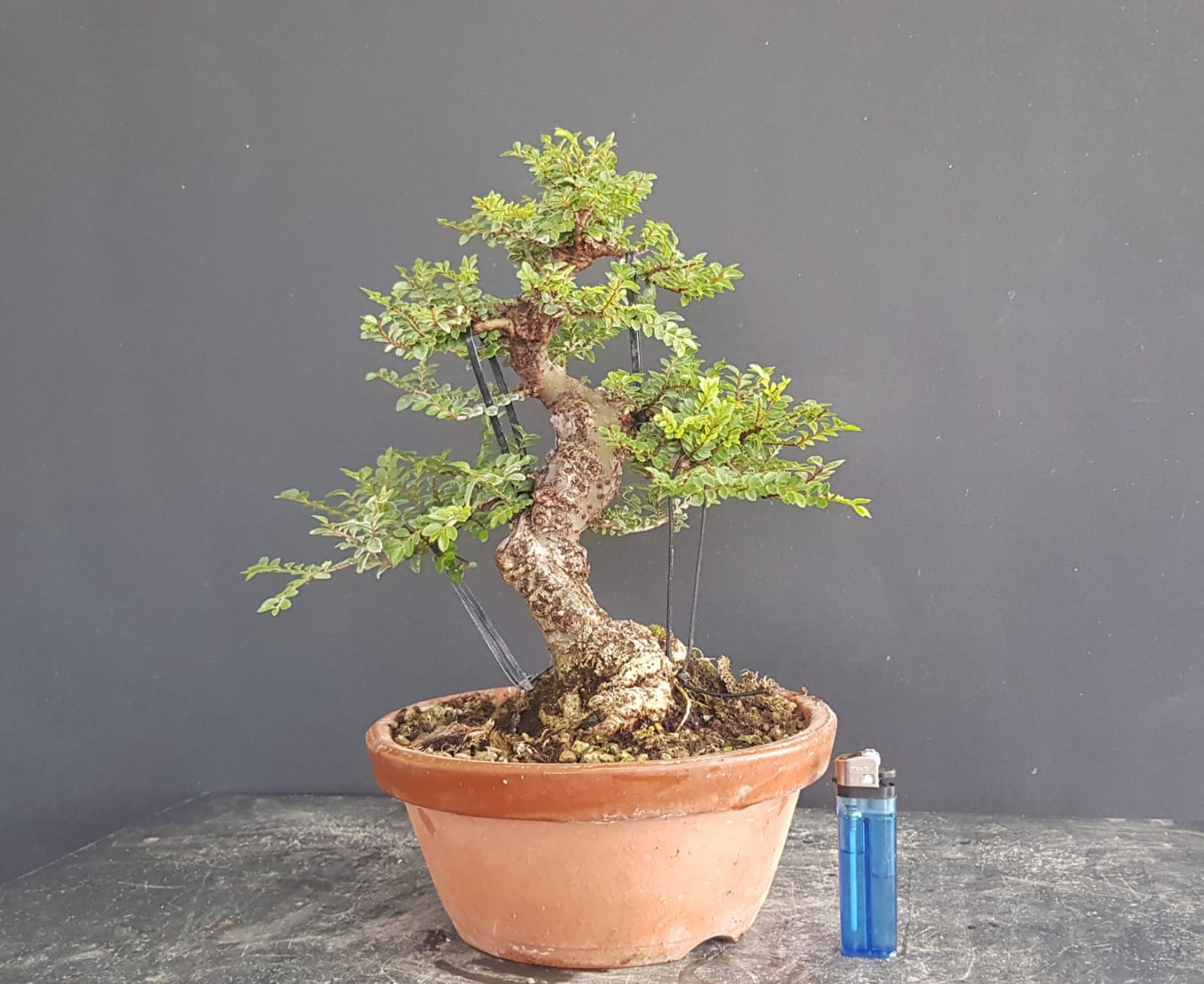 Variedad enana de Olmo, de hoja diminuta y alta capacidad de densificar su ramificación.